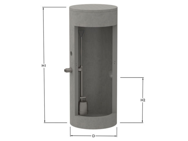 Vi levererar pumpbrunnar för såväl grå- som svartvatten i många olika storlekar och typer. Alla mått kan justeras efter behov. Pumpbrunnarna tillverkas i stålfiberbetong och levereras med borrade in- och utlopp samt uttag för kabelskyddsslang.
